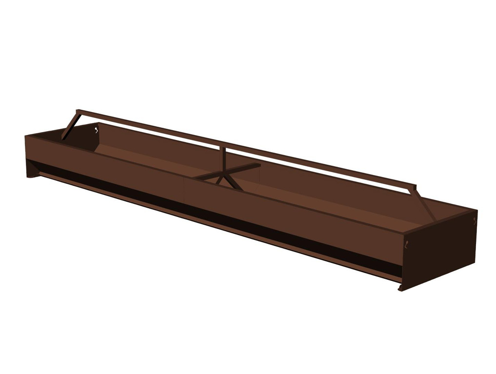 Macksteel standard feedbunks are delivered in bare steel and are available in 10ga, 12ga, or 14ga thick materials. All standard bunks are 20' long.